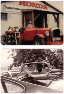 Später dann nach dem Studium und schon im Beruf die Bekanntschaft und Freundschaft mit dem ersten Harley Davidson Direktor Deutschlands – Sam Brustas. Die Frage an uns: „Wollt ihr nicht eine Harley-Vertretung übernehmen?“ Damals überlegte man nicht: „stimmt die Finanzierung“ etc. – nein! Es wurde im Dorf ein Hühnerstall gemietet, angestrichen und der Verkaufsraum war fertig. Ein Mechaniker aus der Nachbarschaft war schnell gewonnen, der auch fleißig Harley-Fortbildungs-Kurse in Groß-Gerau machte. Und wir waren glücklich als dann die ersten Maschinen verkauft wurden. Bald kamen in den MOTO LADEN noch einige MAICO’s, Yamaha XT500 und die Enduro CAGIVA. Und ich erinnere mich an eine Ducati 900, eine SS MV Augusta Super Amerika und eine Triumph Silver Jubilee.